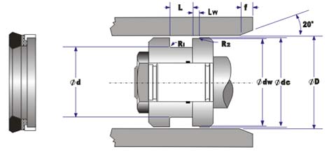 单向活塞密封,适用于中型液压缸,有效降低摩擦损耗,密封件由两部分组成:a)耐磨挡