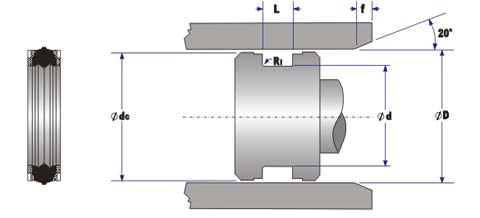 双向活塞密封,适用于中型液压缸,密封件由五部分组成:a) 耐磨挡圈:聚甲醛,可在室