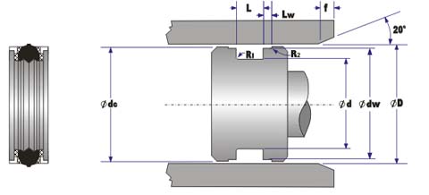 双向活塞密封,适用于中型液压缸,密封件由五部分组成:a)耐磨挡圈:聚甲醛,2件;