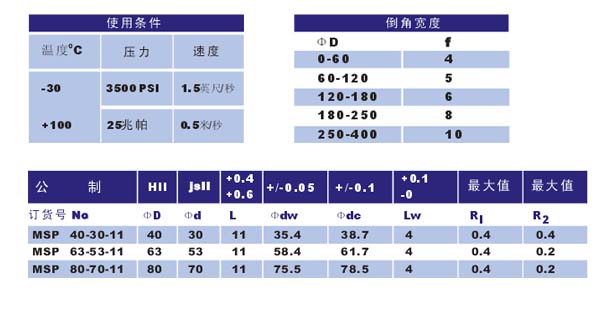 双向活塞密封,适用于轻型液压缸,密封件由三部分组成:a)耐磨挡圈:采用聚甲醛材