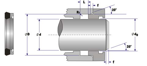 单向活塞杆密封,适用于轻型油缸,密封件由两部分组成:a)聚甲醛挡圈;b)密封体: