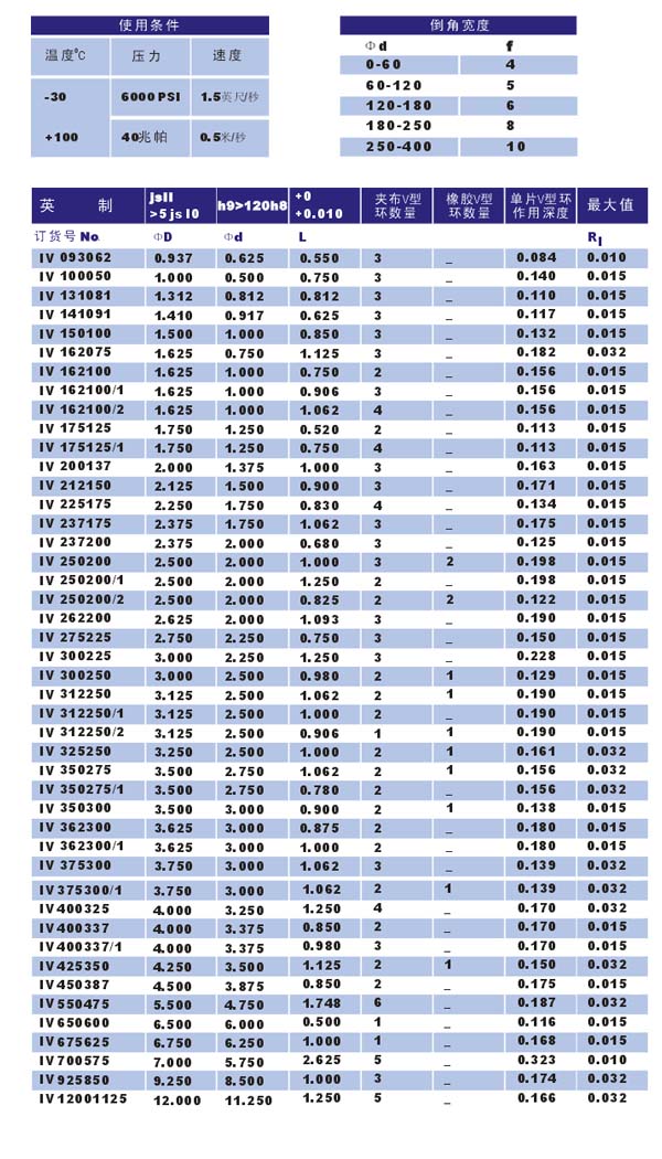 单向活塞杆密封,适用于中型液压缸,密封组由上下两个封片,以及一系列V型环组成: